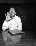 Six City Conference coaches were on the listening end as Athletic Director Herman Clark gave last minute instructions. Photographed here is one of coaches, representing Technical School, coach Johnny Stovall. Published in Fort Worth Star-Telegram morning edition August 30, 1950.