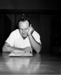 Six City Conference coaches were on the listening end as Athletic Director Herman Clark gave last minute instructions. Pictured is one of coaches, representing Paschal School, coach Bill Allen. Published in Fort Worth Star-Telegram morning edition August 30, 1950.