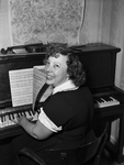 Image shows Mrs. Diane Johnston, who wone $100 the Star-Telegram's "High in the Saddle and Lonesome for you" original song contest. Published in the morning edition, August 31, 1950.