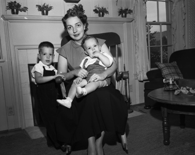 Mrs. Joseph W. Robertson of Washington, and her sons, Bill, 3, and Jim, 1, came to Fort Worth to visit family, including Mrs. Robertson's sister, Mrs. Jack G. Harris and Mr. Harris, at 3601 Westcliff Road South. The family also visited Mr. Robertson's parents, Mr. and Mrs. James A. Robertson, of 3004 Ryan Avenue. Published in the evening edition, September 1, 1950.