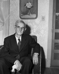 Image shows the 96-year-old, Mr. J. C. Fowler, sitting in a chair, facing toward the camera.