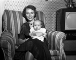 Image shows Mrs. Ed Heap, holding her three-month-old daughter, Sally. The two returned home to Temple after a visit with Mrs. Heap's mother, Mrs. Martha Lawrence, of 4008 White Settlement Road. Published in the evening edition, September 11, 1950.