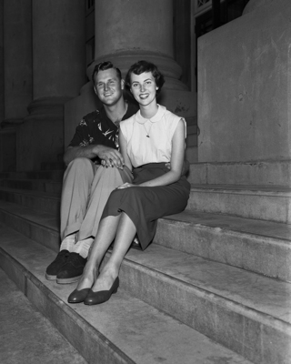 John Morton, a fullback for the Texas Christian University (TCU) football team, engaged to Miss Mary Elaine Shipp, of Austin Texas. Published in the morning edition, September 3, 1950.