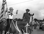 Tom Hickman, right, former Texas Ranger who started his peace officer career in Gainsville near 42 years before this photo was taken, and John H. Johnson, left, a 70-year-old oilman, are shown on horses readying to ride in the Gainsville parade that was to open the city's centennial celebration. Published in the morning edition, September 5, 1950.
