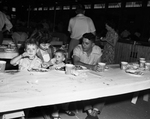 During Labor Day activities, one of the many families that attended the picnic are shown sitting together. Mr. and Mrs. William M. Morris of Arlington sit with their children, Bill Jr., 5, and Barbara, 2. Published in the morning edition, September 5, 1950.