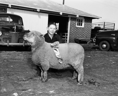 Glenn Bragg, 11, son of Mr. and Mrs. Owen Bragg, Talpa, showed his Southdown fat lamb to championship in the Coleman Livestock Show, in competition with 315 other entries. Glenn is a Future Farmer America Boy who showed the champion fat lamb at 1949 Southwestern Exposition and Fat Stock Show in Fort Worth.