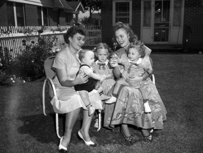 Mrs. William D. Crane, left, of Dallas and son, William Franz, and her sister, Mrs. George E. Summers Jr., of Bismarck, North Dakota and daughters Lynne, center, and Sharon, are visiting the children's grandparents, Mr. and Mrs. Blackert.