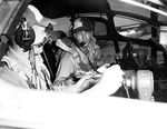 At right, First Lieutenant K. Kruse, pilot, is handed dinner by Wunderlich while keeping one hand on the controls. Published in Fort Worth Star-Telegram morning edition, September 10, 1950.