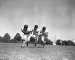 Pictured are Arlington Heights fullback Van Williams, left, and Left Halfback Ronald Clinkscale lead way for right Halfback Dick Bourland. Published in Fort Worth Star-Telegram evening edition September 9, 1950.