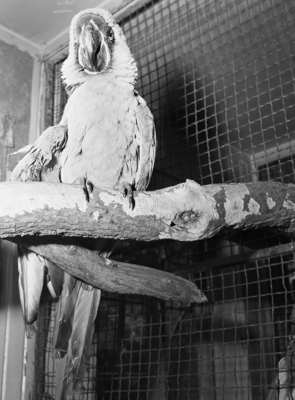 Image shows one of the new arrivals at Forest Park Zoo, a beautiful military macaw (or Ara militarist). Published in Fort Worth Star-Telegram morning edition September 10, 1950.