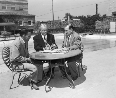 The three men pictured here were responsible for scheduling important parts of the state democratic convention that took place in Mineral Wells. From left to right, they are, Judd R. Stuart of Strawn, slated to become secretary of the state committee, James E. Wheat of Woodville, now secretary but due to be chairman, and Senator Wardlow Lane of Center, Texas, who was most likely to be temporary chairman of the convention.