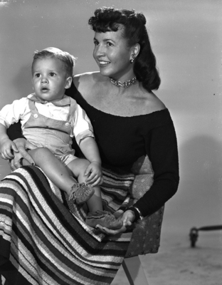 Pictured here is Mrs. Thomas H. Grieger and her son, Alan, 18 months, visiting here with her mother, Mrs. Thelma Meador. They are from and plan to return to Baltimore, Maryland.