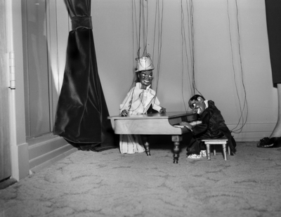 Here it is shown Jazzbo, the piano-playing puppet, and Bill, the tap dancer puppet. Published in the Fort Worth Star-Telegram evening edition, January 19, 1950.
