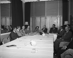 Members of the gas committee of the Independent Petroleum Association of America, who met at the Blackstone Hotel to draft a report for the annual convention at St. Louis. They are, from left to right, Paul Raigorodsky, of Houston, Marshall Newcomb, of Dallas, R. O. Roy, of Shreveport, E. L. Rawlins, of Shreveport, Helen Lovell, of Ardmore Oklahoma, R. C. Kay, of Amarillo, chairman, W. C. Windsor, of Tyler, and L. Dan Jones, of Washington D.C.