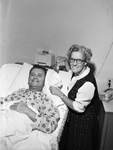 A. W. Reynolds, a patient in Fort Worth Osteopathic Hospital Inc., settles down for an afternoon with his favorite programs as his wife adjusts the pillow radio in his hospital room.