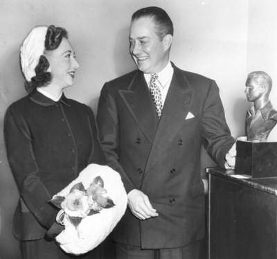 Mrs. Electra Waggoner Biggs and husband John at opening of Fort Worth Art Association exhibit 01-19-1950