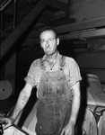 Image shows Star-Telegram Junior bust shot of William Edward Bryant. He is a journeyman pressman. He is building a home in Richland Hills, married, his hobbies are hunting and fishing. He is shown to be posed inside a factory. Published in the Fort Worth Star-Telegram October, 1950.