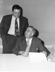 Pictured here is Lawrence Alley, left, of Interstate Oil Compact Commission, Oklahoma City, discusses a report on the commission with A. J. Brunini, of Vicksburg, Mississippi. Brunini is chairman of the Independent Petroleum Association of America's Interstate Oil Compact Commission committee.