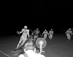 Bobby Hughes, Paschal quarterback and passing ace, evades Woodrow Wilson's Bob Brooks (73) and Charles Whatley (16) in game at Farrington Field. Paschal won, 41-6. Published in Fort Worth Star-Telegram evening September 15, 1950.