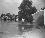 Mrs. D. J. Metzker, and Edward Love, carry household goods away from their homes as water rose during flash floods that previous Tuesday.