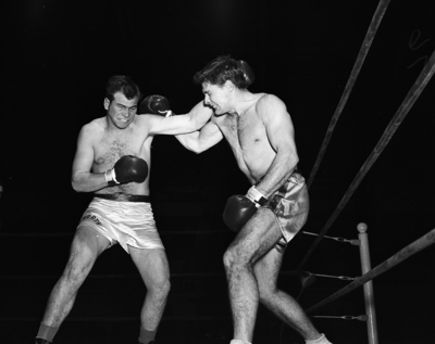 Roger Cromwell loses to Ken Taylor (Left) in a boxing bout. Published in the Fort Worth Star-Telegram morning edition, January 22, 1950.