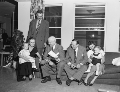 People seated on a couch at J. Lee Johnson IV's second birthday party. Among these people are: Amon Carter and J. Lee Johnson IV.