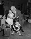 A kneeling Amon Carter smiles with his grandchildren, J. Lee Johnson IV and Sheila Johnson.