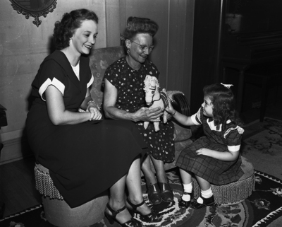 Mrs. Alfred L. Meadows, center, veteran Sunday school teacher at Connell Baptist Church was teaching second generation pupils. With her is Mrs. Odelle Clements, 5028 Collinwood, a former pupil, and Mrs. Clements' daughter, Linda Ruth, a member of the 1950 class. Published in the Fort Worth Star - Telegram evening edition, September 30, 1950.