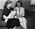 Mrs. James A. Carr, 3728 Clarke, left, president of Sigma Kappa alumnae, was pictured with her daughter, Mrs. Leonard Cowden Jr., and Mrs. Cowden's baby, Leonard Cowden III. The young Cowden's home was in Shamrock. Published in the Fort Worth Star - Telegram morning edition, October 02, 1950.