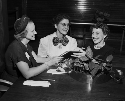 Leaders in the organization of a Parent-Teacher Association at the new Westcliff School were, left to right, Mrs. John Lambert, president of the city council; Miss Julia Chrisman, principal, and Mrs. Luther I. Prescott, who was elected first president. Published in the Fort Worth Star - Telegram evening edition, October 2, 1950.
