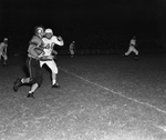 Tommy Donnell, Amarillo back, comes to the end of a 25-yard first gain against Paschal at Farrington field. Closing in for the tackle is Robert Towery of Paschal. Published in Fort Worth Star-Telegram morning edition September 20, 1950.