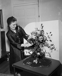 Mrs. Earl White, Meridian, judging school director and state lecture chairman, puts the final touch on a mid-Victorian arrangement at Saint Ann's Club. Mrs. White gave a demonstration and lecture, before members of Preparatory Flower Show Judges of Fort Worth. Published in the Fort Worth Star - Telegram morning edition, October 3, 1950.
