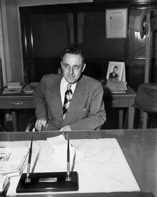 J. E. Gilliland, assistant to the president of the Frisco Railroad, was in Fort Worth to look over industrial properties and potential sites for the location of new industries. Published in the Fort Worth Star - Telegram morning edition, October 3, 1950.