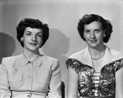 Miss Betty Donohoo, 2842 Avenue I, left, and Miss Beverly Luckey, 604 Hudgins, were the presidents of two new chapters of Epsilon Sigma Alpha. Miss Donohoo was president of Eta Omicron chapter and Miss Luckey of Eta Pi chapter. Published in the Fort Worth Star - Telegram morning edition, October 3, 1950.