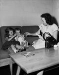 Pictured here is Mrs. W. T. Allen 4221 Standish, Fort Worth reaches for gum which daughter Kathlene Allen, 14 month-old patient, is preparing to stuff in her mouth, wrapper and all. At left, sister Carol Allen, 3, gives an assist. Published in the Fort Worth Star - Telegram morning edition, October 8, 1950.