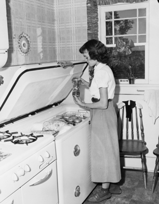 Yolanda Ellis looking into a frozen food box, this image was the front cover on the Ranch and Farm magazine. Published in Fort Worth Star-Telegram morning edition December 3, 1950.