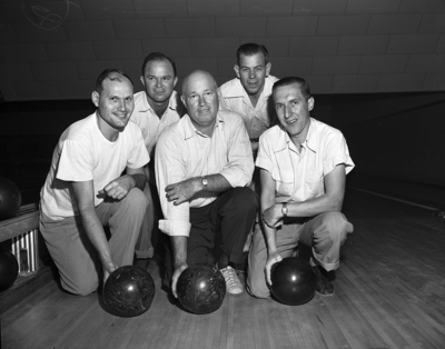 Bowling; Bowling alleys; Sports; Group Portrait photographs