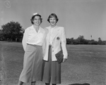 Betsy Rawls, left, won the medal with a 69 in Texas Women's open qualifying. Beverly Hanson, right, is defending champion. Published in Fort Worth Star-Telegram, morning edition October 10, 1950.