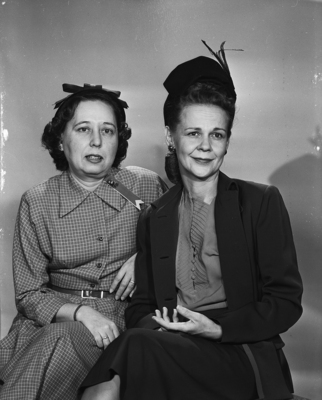 Mmes. Charley Cadwallader, left, and Harold F. Millican were two of the ex-presidents of Beta Alpha Rho, YWCA business girls club, who attended the homecoming for the organization on November 9, 1950 at the YWCA. Published in the Fort Worth Star - Telegram morning edition, October 11, 1950.