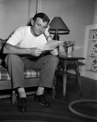Tommy Tatum, utility man and assistant manager to Bobby Bragan of the Fort Worth baseball team, reports to Fort Sam Houston October 20, 1950 for active duty with the Air Force. Tatum, 31, served four years as a staff sergeant in World War II. He was a member of the reserves. Published in the Fort Worth Star - Telegram morning edition, October 10, 1950.