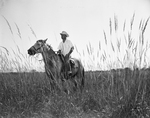 Art Dillon found a farming formula that enabled both himself and his land to regain lost health. Astride a favorite horse, he surveys one of his native grass pastures. Published in Fort Worth Star-Telegram January 1951.