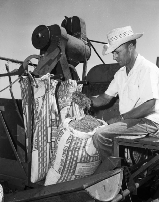 Indian grass seed from Art Dillon's pastures is sold to neighbors and other for pasture building. He charges $1 per pound for the seed. Published in Fort Worth Star-Telegram January 1951.