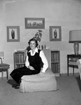 Image shows Miss Kay Fortson, debutante, to be presented at the Assembly Ball. She is shown to be seated next to a book case. Published in the Fort Worth Star-Telegram evening edition, October 27, 1950.