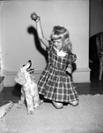 Kathy Garrett, 6-year-old daughter of Mr. and Mrs. Morgan Garrett, Arlington, will show her puppy in the Junior Showmanship Class at the Lone Star Cocker Spaniel Club's show at the Recreation Building. Kathy is in the first grade. Published in Fort Worth Star-Telegram morning edition, October 15, 1950.