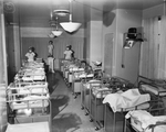 A view of the nursery, equipped with the latest model of plastic cribs, in the re-designed and completely done-over obstetrical ward of Saint Joseph's Hospital. The nursery features a picture window into the fathers' waiting room. Published in Fort Worth Star-Telegram morning edition, October 15, 1950.