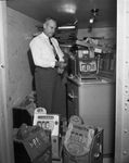 Dozens of seized slot machines await destruction at police headquarters, Police Chief Hawkins said in explaining why such machines have disappeared from sight in Fort Worth business houses. The coin-catchers will soon get a sledgehammer treatment, he promised. Published in Fort Worth Star-Telegram morning edition, October 14, 1950.
