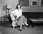 Image shows Miss Anne Moseley, debutante. She is shown to be seated on a couch in a living room. She is to be presented at the Steeplechase Ball. Published in the Fort Worth Star-Telegram evening edition, November 3, 1950.