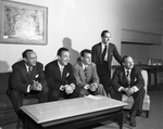 Image shows Officers of Steeplechase who will escort debutantes on November 17 at the annual Steeplechase ball from left to right, J. A. Schutts, Lloyd F. Haug, Tom Mastin Jr., Dr. James H. Simmons and A. W. Baker. Published in the Fort Worth Star-Telegram evening edition , November 3, 1950.