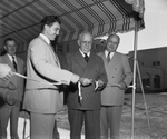 Left to right; J. C. Llewellyn, Mayor Edgar Deen and Grover A. Godfrey of Dallas.
