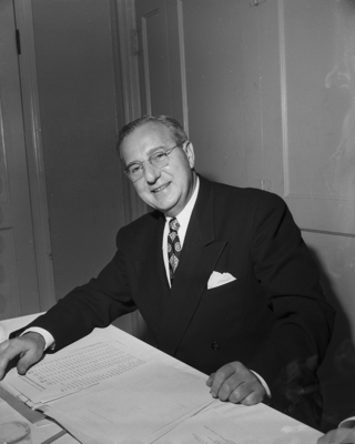 Terming Better Business Bureaus "the Paul Reverses of the business world", Victor H. Nyborg, of New York, president of the Association of Better Business Bureaus, outlined the nationwide scope of the association in an address before a joint meeting of the Fort Worth Bureau and the Lions Club at Hotel Texas. Published in Fort Worth Star-Telegram morning edition, October 18, 1950.